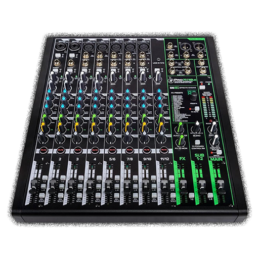 The Mackie ProFX12v3 is a professional 12-channel analog mixer built for versatility — perfect for live sound, studio recording, podcasts, and streaming. It features 7 Onyx mic preamps delivering up to 60dB of clean gain, making it ideal for dynamic or broadcast mics. With 24 built-in GigFX effects, 24-bit/192kHz USB recording, and 2×4 I/O for custom computer mixes, it offers pro-level flexibility in any setup. A single-knob blend control lets you easily monitor between direct input and playback for effortless overdubbing and mixing.